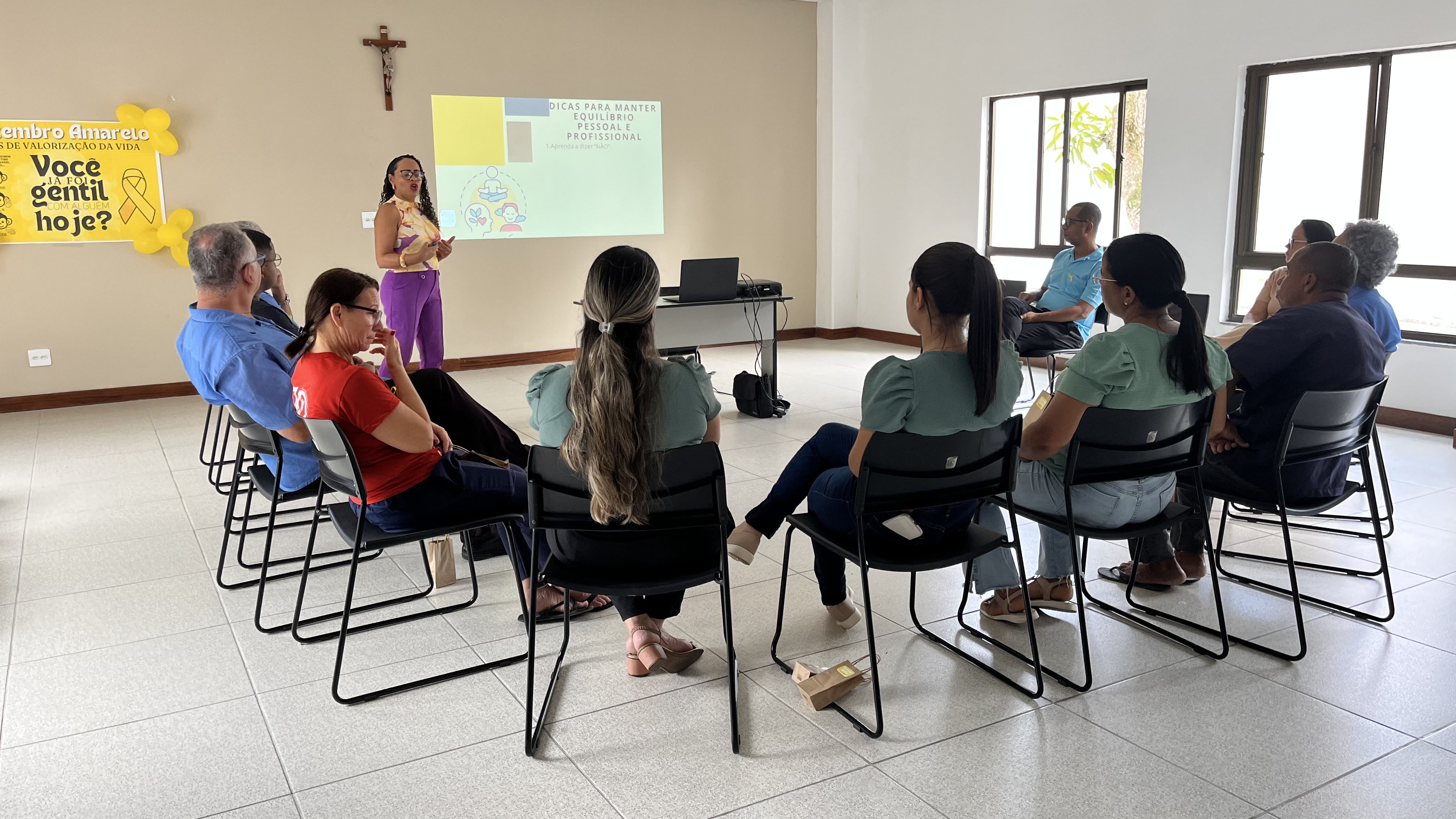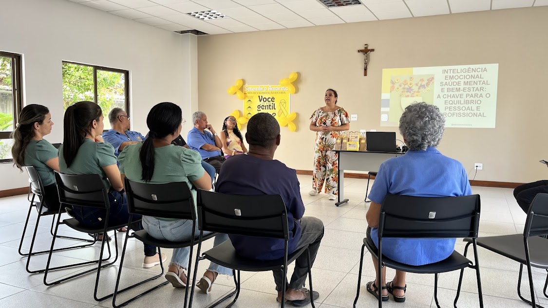 Em alusão ao Setembro Amarelo, mês dedicado à valorização da vida e ao cuidado com a saúde mental, os colaboradores da Mitra Diocesana participaram, na manhã desta terça-feira (23/09), de um encontro especial de reflexão e conscientização.O encontro foi conduzido pela equipe de Saúde, segurança e meio ambiente (SSMA), a especialista em Gestão de Pessoas e Treinadora Comportamental, Tatiane Cunha, conduziu a reflexão abordando temas fundamentais como a importância da inteligência emocional, do gerenciamento das emoções, da atenção plena ao presente e da busca de ajuda profissional sempre que necessário.