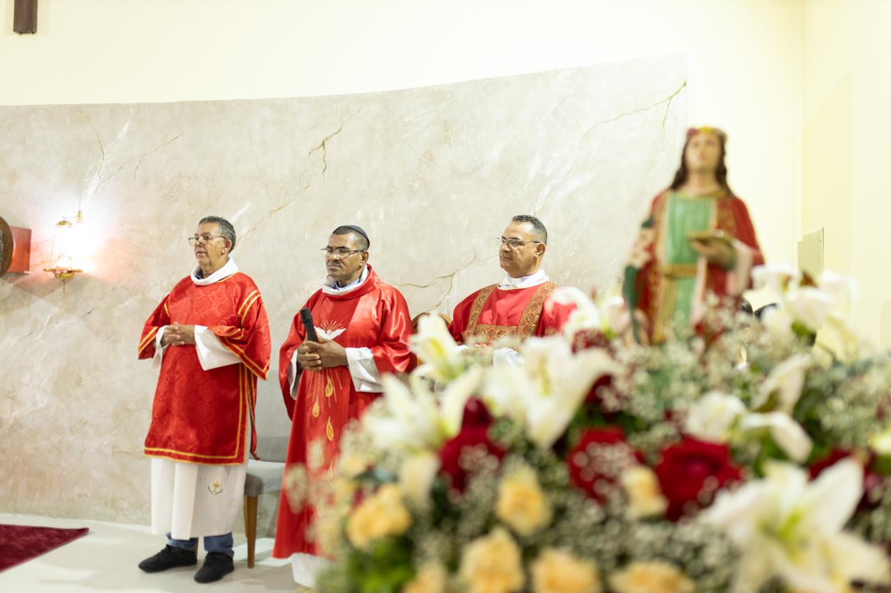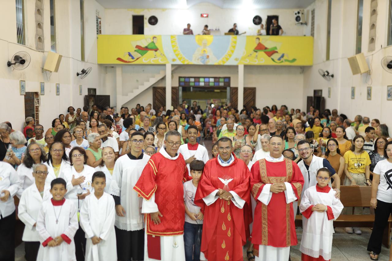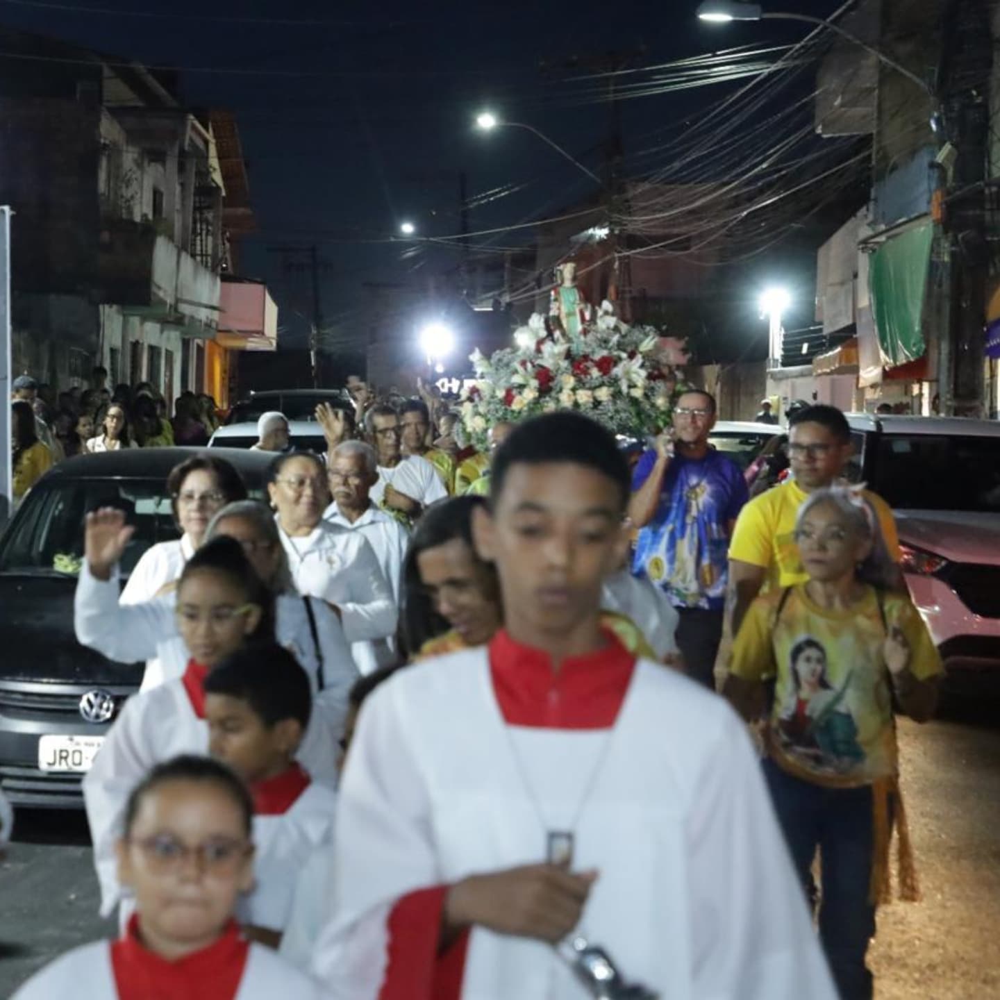 Encerrando os festejos, os fiéis participaram da procissão que partiu da Comunidade Imaculado Coração de Maria e seguiu até a Igreja Matriz. A programação festiva concluiu-se com a Missa Solene presidida pelo pároco, Cônego André Alexandre.
